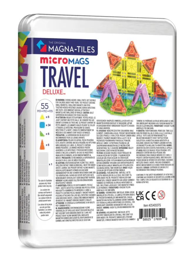 Perfect voor in de auto, op vakantie, in het vliegtuig of tijdens een restaurantbezoek. De set bevat 55 kleurrijke magnetische tegels die maar liefst 75% kleiner zijn dan standaard MAGNA-TILES®, waardoor ze ideaal zijn om overal mee naartoe te nemen. Dankzij de handige reiskoffer heb je altijd een georganiseerde en draagbare speeloplossing bij de hand.