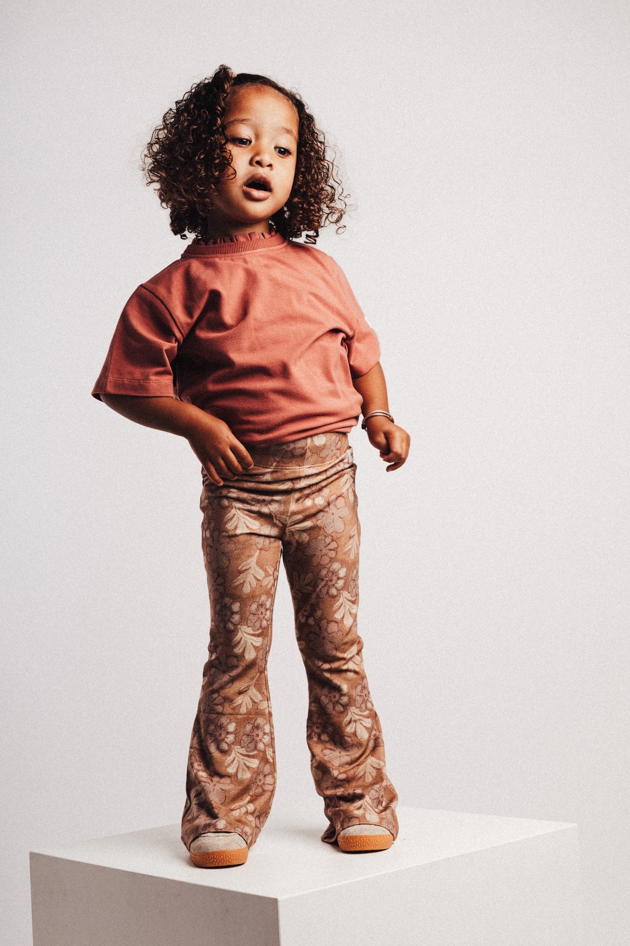 De Brown Coconut kleur geeft de flare een warme en natuurlijke uitstraling. Dankzij de comfortabele pasvorm en elastische tailleband heeft je kind voldoende bewegingsvrijheid tijdens school, spelen en andere dagelijkse momenten. De uitlopende pijpen geven de broek een speelse en modieuze look.