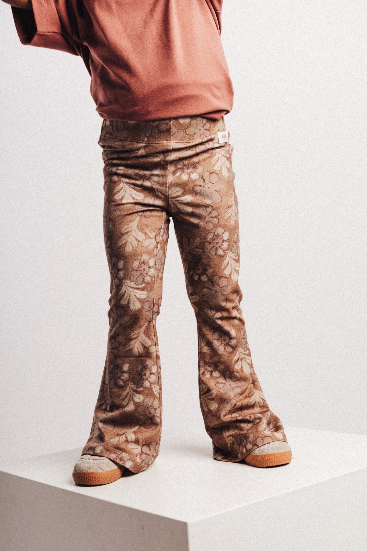 De Saron | Flare | Brown Coconut van Baje is een stijlvolle en comfortabele flared broek voor kinderen. Een trendy item in de warme Brown Coconut tint, perfect voor zowel casual als nettere outfits.