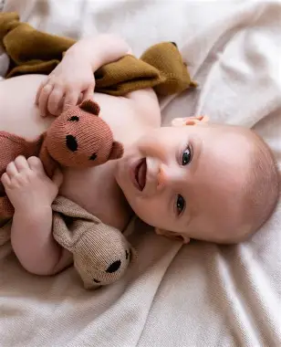 De merinowol neemt de geur van je baby op en zorgt zo voor een vertrouwd en geruststellend gevoel. Omdat merinowol ademend en temperatuurregulerend is, is deze teddy zeer geschikt voor jonge kinderen. De wol jeukt niet, is antibacterieel en daardoor ook ideaal voor kinderen met een gevoelige huid of eczeem.
